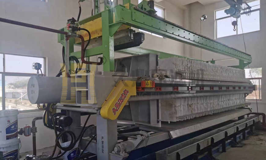 2、壓濾脫水系統(tǒng)由高壓隔膜壓濾機、污泥進料(進泥)系統(tǒng)、二次壓榨系統(tǒng)、卸泥存儲系統(tǒng)、氣源系統(tǒng)、自控系統(tǒng)等組成。壓濾脫水系統(tǒng)的關(guān)鍵設(shè)備采用隔膜壓濾機,調(diào)質(zhì)后的污泥通過兩級進泥泵(一級快速進泥,二級將污泥固化成型)輸送至壓濾機壓濾脫水,再通過高壓壓榨泵進行加壓脫水,進一步降低含水率。之后利用高壓空氣吹掃壓濾機進泥管中的污泥及泥餅表面的表面水,讓污泥濾餅更容易脫落。脫落后的濾餅進入電動儲泥斗暫時緩存,污泥車進入脫水間一層,打開污泥料斗,污泥在重力作用下進入污泥車運走。
